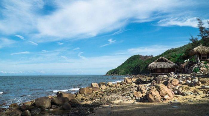 The rocky beach at Bai Dong is also a fantastic spot for photography enthusiasts. Large round rocks scattered across the sea create an incredibly picturesque setting. At Bai Dong, there is a refreshing coconut water stand by the shore where visitors can sit, sip on a fresh coconut (priced at 30,000 VND), and savor the taste of the sea. You can also enjoy a relaxing time on the swing or the slide while soaking in the fresh sea breeze.