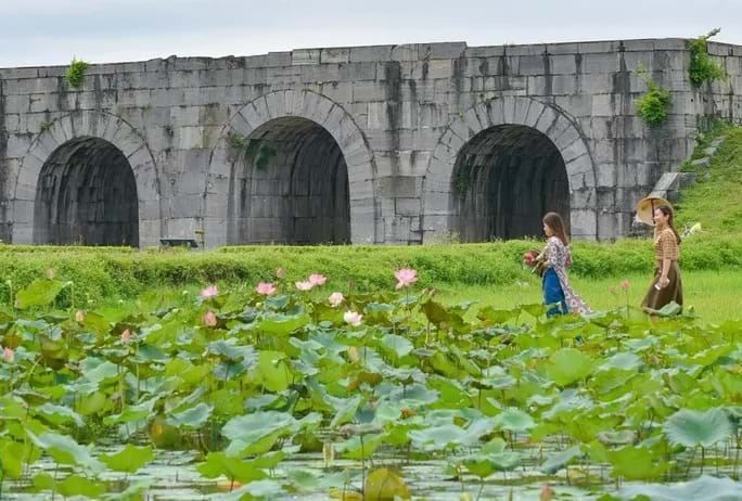 This is the starting point of the Central Vietnam Heritage Trail, where you can visit the impressive Ho Dynasty Citadel, a testament to the reign of King Ho Quy Ly. Despite the passage of over 600 years, with both historical upheaval and natural wear, the outer walls of the citadel remain remarkably intact. The fortress is constructed from finely crafted green limestone blocks, measuring around 1.5 meters long and some reaching as high as 6 meters, weighing several tons. These stone blocks are tightly stacked without any binding agents, standing firm through the ages.