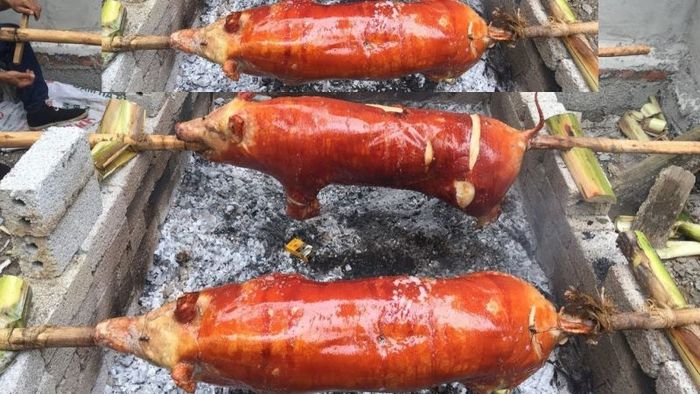 Roast pig is a famous dish in Lang Son, long known as an essential part of sumptuous feasts and a signature dish of the Tay people. Roast pig is elaborately prepared to bring out a unique flavor. Typically, only pigs weighing from 25kg to 30kg are roasted to ensure tender and fragrant meat. Like roast duck, the pig's skin is also coated with honey to create its distinctive golden shine.