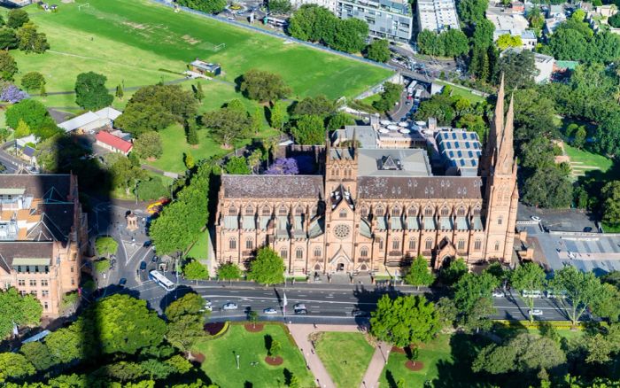 Upon entering the grounds of St Mary's Cathedral, you'll be amazed by the cathedral's exquisite gothic architecture. With warm brown tones and intricate details, St Mary's Cathedral stands out amidst the modern buildings. The overall design combines complex decorative elements and towering spires arranged in balance, creating a sacred and dignified space.