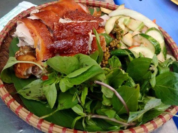 The duck combos start at 79,000 VND per person, and include: 2-person set: Grilled duck, pickled duck feet, boiled duck organs, bamboo shoots, and vermicelli. 4-person set: Grilled duck, stir-fried duck with ginger, pickled duck feet, boiled duck organs, bamboo shoots, and vermicelli. 6-person set: Grilled duck, boiled duck, stir-fried duck with ginger, crispy duck tongue, smoked duck breast, pickled duck feet, bamboo shoot soup, and boiled duck organs.