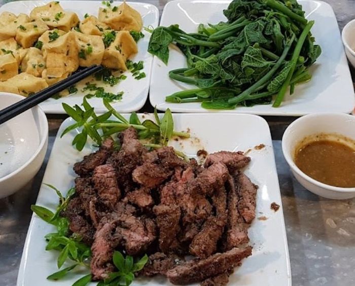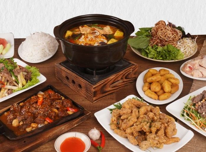 The star of the menu at Bò Tơ Quán Mộc is beef, sourced from young cows still nursing, raised in Moc Chau farms. The entire process—from slaughtering to transportation and cooking—is completed on the same day, ensuring fresh, sweet, and tender meat. The restaurant’s popular dishes include beef hot pot, grilled young beef, and beef wrapped in vegetables. All dishes are served hot and full of flavor, perfect for warming up during the chilly late winter to early spring.