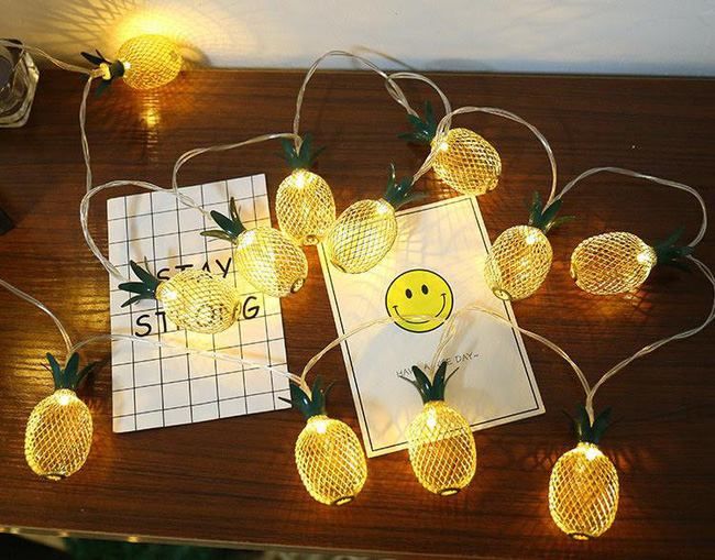 This type of light is made of high-quality plastic for durability. The pineapple part is crafted from metal and connected sequentially with equal spacing. The soft yellow light inside each pineapple creates a gentle glow, not harsh on the eyes. It usually illuminates with two modes: steady light and continuous flash, creating an impressive lighting space for your home.