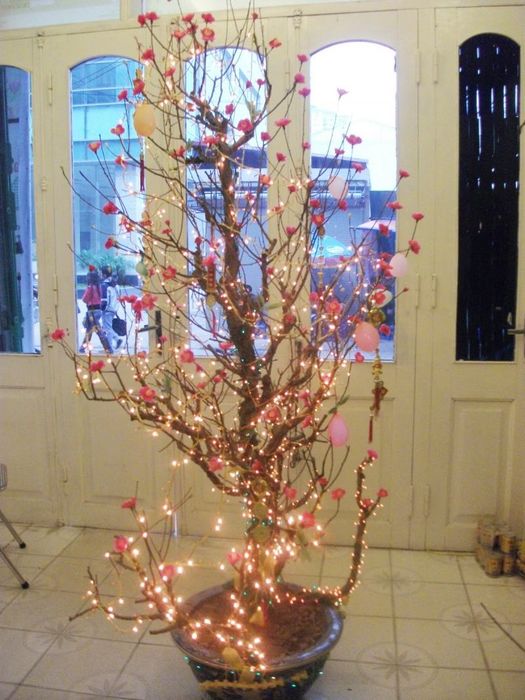 The lights, resembling dewdrops with warm golden hues, enhance the ambiance for New Year gatherings. Tree-shaped LED lights are a uniquely fascinating addition to living rooms and bedrooms, creating a sparkling, enchanting atmosphere without overshadowing the inherent beauty of the tree. You can add some additional decorations like lucky money envelopes to enhance the tree's appearance.