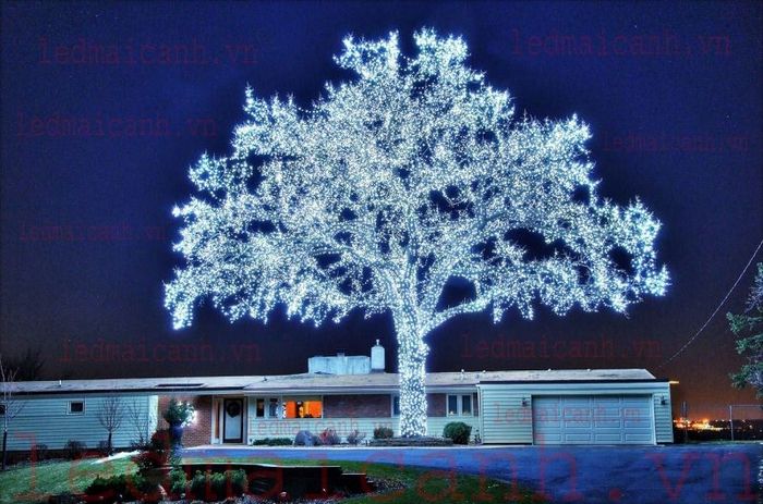 Have you ever wondered about those large trees on the sides of the road with lights cascading down? That's thanks to tube-shaped falling star decoration lights. You can apply this technique to the branches of peach blossoms, the entrance gate, or the trees in front of your house for Tet, making your home shine and sparkle with light.