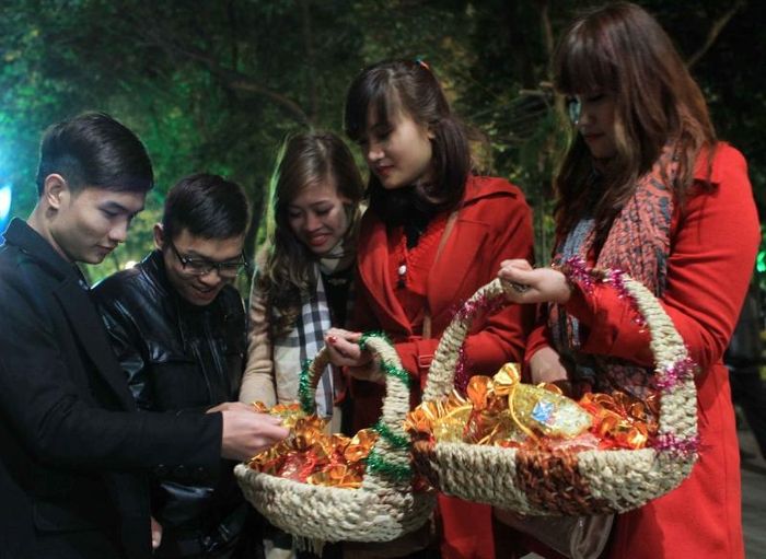 According to Vietnamese beliefs, the first day of Tet is not only the beginning of the new year but also the time when heaven and earth converge, and all things come to life. Vietnamese people especially value actions taken at the first moment of the new spring. In the traditional Tet customs, the first journey of the year signifies the wish for a smooth and prosperous new year. Therefore, people carefully consider the auspicious time and direction for their first trip, hoping to encounter lots of luck in the coming new year. As for business people, they are concerned about the opening day.