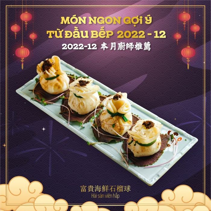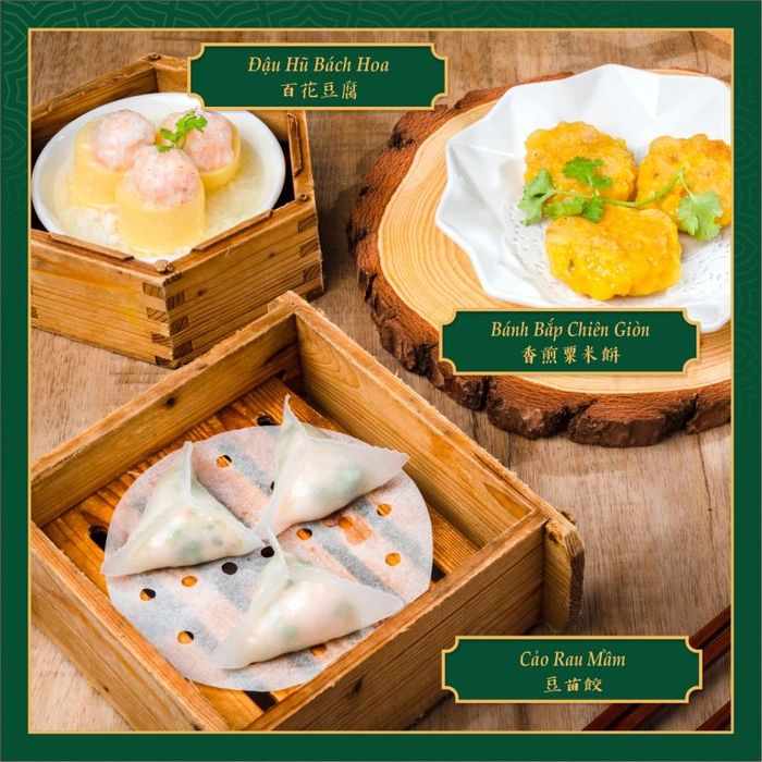 Tân Hải Vân features an old-world charm, with its iconic two-story Chinese-style roof and architecture. The restaurant, which can accommodate up to 350 guests, impresses with its clever use of space and design. From the green walls to the red wooden chairs and intricately carved wooden partitions, every detail adds to the unique atmosphere. Elegant chandeliers and recessed lighting create a warm and inviting environment. At Tân Hải Vân, the dim sum dough is expertly kneaded, thinly rolled, and filled with fresh, aromatic ingredients, offering a truly delightful experience that will leave you wanting more.