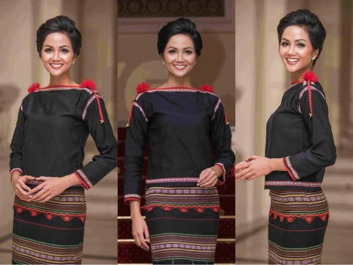 For women's clothing, Ê Đê women wear miếng (wrap skirt) by wrapping it around the waist, covering the lower half of the body. It is a rectangular piece of fabric, with the width wrapping around the body about 1.3 meters long and the length hanging down nearly 1 meter. When worn, the skirt can hang down to the ankles. The outer edge at the top is on the upper end, the trouser leg is fitted on the right side. Ao mniê (women's shirt) is a type of slip-on shirt (split horizontally from the left shoulder to the right shoulder), fitting snugly on the body (neither too wide nor too tight), hanging down to the waist, front and back hem are equal, not split at the hem, available in long sleeves, short sleeves, and sleeveless.