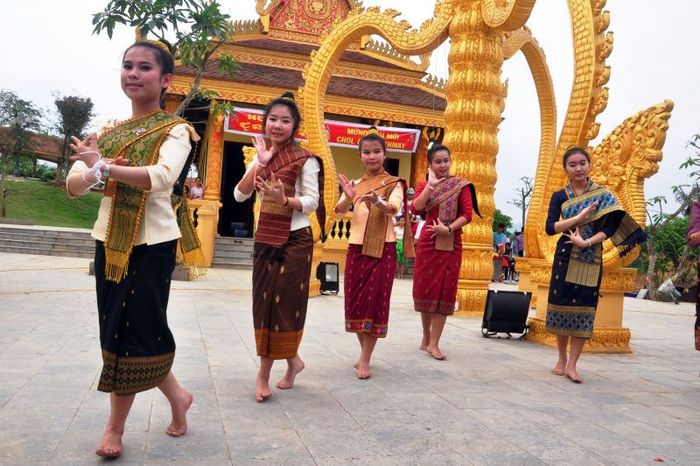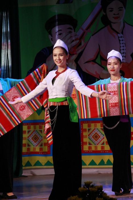 Historically, Thổ women wore fewer dresses, often purchasing dresses from the Thai people, hence their attire bears many influences from the Thai culture. However, it still possesses its unique beauty. The Thổ women's dress comprises three parts: a white or dark red skirt, a black bodice with horizontal stripes, and a skirt adorned with simple diamond-shaped Thổ motifs. Their attire is relatively light, with a square white headscarf and a green or red belt. Overall, Thổ ethnic women's attire is simple, providing a sense of lightness and comfort.