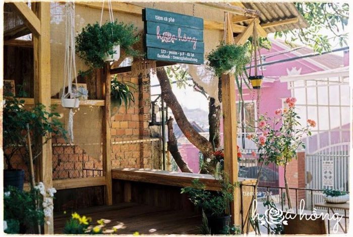 The entire space of the café is filled with the color of roses. Roses are planted from the entrance gate to the courtyard, and even inside the café, adorning every table. It breathes a floral essence into our souls as soon as we accidentally step in. This is a café with a gentle, dreamy, yet deeply romantic atmosphere. The café's design is quite comfortable with its rustic wooden furniture and vintage materials. When the sun shines through the glass windows, permeating every corner of the room, its beauty is further enhanced. Additionally, the beverages here are quite special and delicious. The rose tea is freshly picked from the organic garden behind the house, or the egg coffee made with a special, delightful recipe.