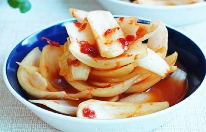 Sweet and sour pickled onions are excellent for reducing bad cholesterol, increasing good cholesterol (HDL), promoting good blood circulation, and reducing excess fat in the body. They are a fantastic choice for weight loss. Additionally, they provide great benefits for digestion, preventing constipation, bloating, and acid reflux. A plate of sweet and sour pickled onions not only stimulates the taste buds but also brings many health benefits. Pickling onions quickly become sourer than other types of onions because they absorb seasoning easily. The most important step is preparing the pickling sauce, mixing sugar with chili paste, a little salt, and a little vinegar, then mixing well with thinly sliced onions, allowing the seasoning to penetrate. Let it sit in the fridge for about 2 hours before enjoying it with noodles or boiled meat.