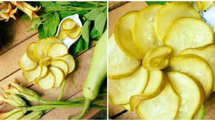 Savor the delightful tanginess of pickled squash, perfect for various dishes.