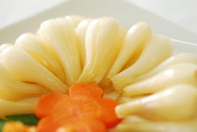 Indulge in the sweet and tangy goodness of pickled turnip and carrot flowers.