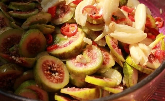 Savor the zesty, sweet, and spicy goodness of pickled star fruit with garlic and chili.