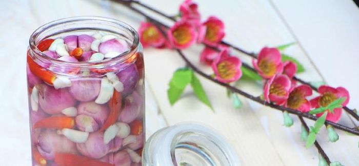 Pickled vegetables are a popular choice for many Vietnamese during Tet. They are simple to make with ingredients such as radishes, carrots, garlic, and onions soaked together with pickled eggplant. With a refreshing sweet and sour taste, pickled vegetables are a wonderful dish to combat holiday fatigue effectively. Moreover, small jars of homemade pickled vegetables also make meaningful Tet gifts for friends and family.