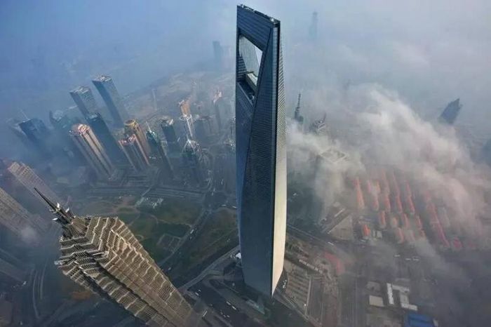 Shanghai World Financial Center, also known for its unique bottle opener shape. The building's design was inspired by a bottle opener to minimize wind pressure, ensuring stability.