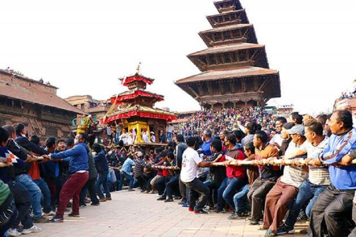 In the festival considered as the New Year of the Nepalese, the images of the god Bhairava and a replica of the goddess Bhadrakali are placed in two large chariots and pulled to a wide square, to seek luck in the new year. The celebration of the New Year in Nepal takes place with many different fun activities including street dances, parades, and various performances. These activities are enthusiastically participated in and sponsored by many individuals and organizations. It's a time when all of Nepal rejoices with colorful decorations. Additionally, you can also attend various festivals in Timi or Bode.