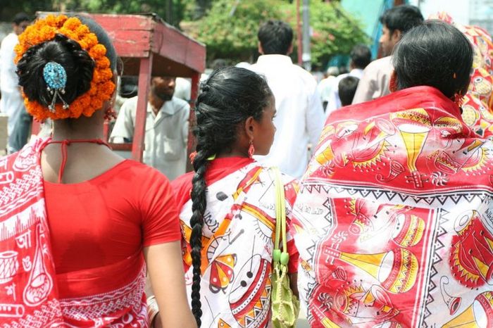 Pohela Boishakh is observed by spending time with family, attending fairs, cleaning, decorating homes, and buying new clothes. As one year ends, the Bengali community purchases Panjika, a book that records all the important dates in the upcoming new year. All auspicious events including housewarmings, weddings are planned according to Panjika. Homes in Bangladesh are adorned with traditional architectural designs called alpana. Delicious foods eaten on this day include illish maach, dhokar dalma, rice, chanar dal. At the transition moment between the old and new year, people from all walks of life, dressed in colorful attire, participate in fun activities such as singing, playing games, dancing, or joining together in feasts.