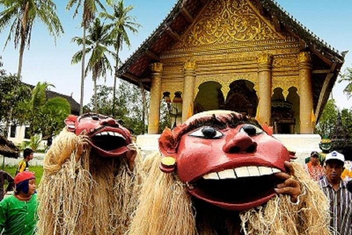 Especially for those in business, lap is often meticulously prepared by chefs, as its taste is believed to affect business success in the new year. On the day of the Laotian New Year, it is customary to give cloth and towels to the elderly. During the day, people go to temples to pray, while in the evening, they gather at the temple for entertainment, traditional music performances (morlam), and circle dancing. Laotians use flowers on New Year's Day to seek good fortune, with two types of flowers: Dok Champa (plumeria, frangipani) is placed on vehicles and adorned in houses, while Dok Muong (golden shower tree) is made into bouquets or worn in the hair to wish for blessings.