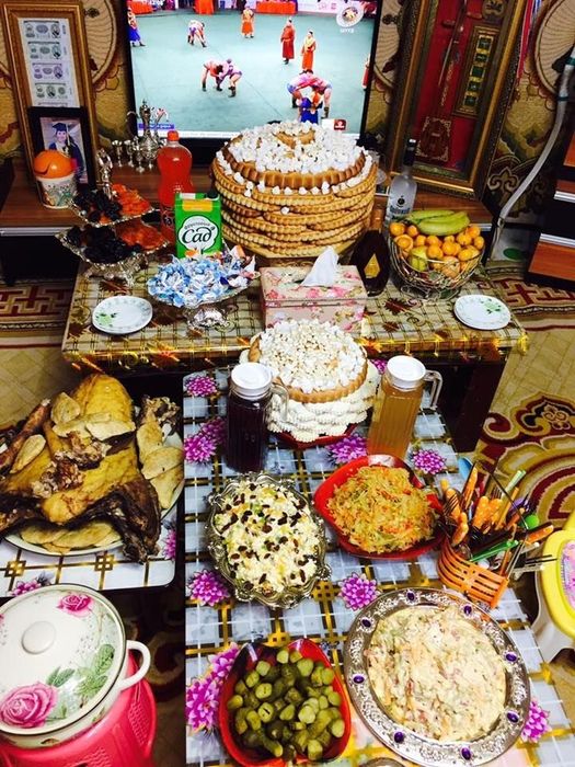 Before the New Year's Eve, Mongolian men perform an important ritual of going up to a nearby hill or mountain to pray. After the prayers, each person chooses a direction that aligns with their zodiac sign to set off. This New Year's departure is believed to bring luck to everyone. During the 3 days of the Lunar New Year, Mongolians only wear traditional costumes. People usually gather at the oldest person's house in the area. Then they chat, joke, exchange foods, and enjoy them together. Everyone must welcome the New Year with an optimistic and positive attitude, a kind heart, refraining from thinking and doing bad things. Moreover, debts must be settled before the New Year, and no one is allowed to argue during the New Year days.