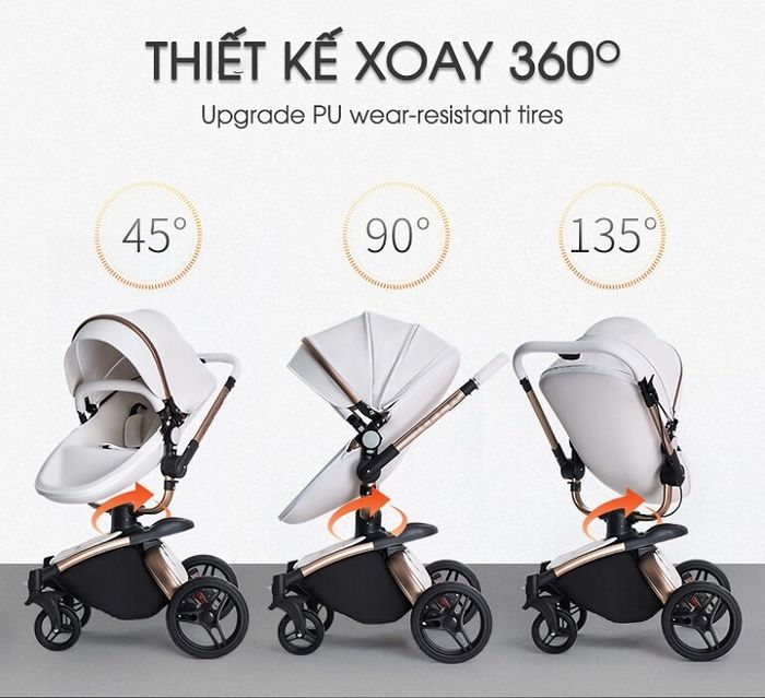 The Chilux S 360 baby stroller is a high-end stroller with modern design and numerous outstanding features. Designed with German technology, the product features a 360° rotating seat, allowing parents to care for their child without removing the bassinet. The Chilux S 360 is equipped with a curved shock-absorbing frame and shock-absorbing mode on all 4 wheels, ensuring that the child feels comfortable even on rough roads, without affecting the baby's neck and spine.