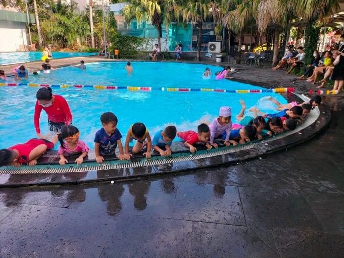 Ong De Swimming Pool Café is one of the trusted swimming locations in Can Tho, offering swimming courses for children starting from 3 years old. Many parents trust this center due to its unique teaching program, which helps build conditioned reflexes. By enrolling in swimming lessons here, children can improve their physical fitness while gaining essential knowledge about water safety and drowning prevention.
