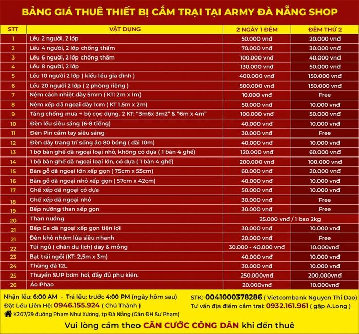 Explore the great outdoors with top-notch camping equipment from Army Da Nang Shop!