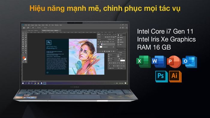 Boasting a powerful configuration with the Intel Core i7 Tiger Lake 1165G7 chip designed for lightweight laptops, delivering high processing performance. Integrated with Intel Iris Xe Graphics for enhanced experiences in office applications, web browsing, 2D graphic design (Photoshop, AI...), high-quality video rendering, and popular gaming titles.