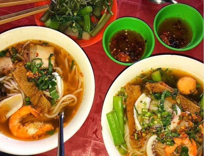 If you're a fan of Bún Mắm and you're in Tan Phu District, make sure to check out Bún Mắm & Bún Thái Kim Thư at 104 Thiên Phước. This cozy spot serves affordable Bún Mắm and Bún Thái with generous portions. The fish is perfectly filleted, and the broth is perfectly balanced, not too salty. The dish includes pork belly, shrimp, squid, fish cake, and Vietnamese sausage, all topped with fresh herbs like water spinach, bean sprouts, and lotus flowers, making the bowl a colorful feast for the eyes as well as the taste buds. The broth is rich in flavor but not overpowering, while the crispy pork and tender seafood add the perfect texture. It's a popular choice that draws a crowd!
