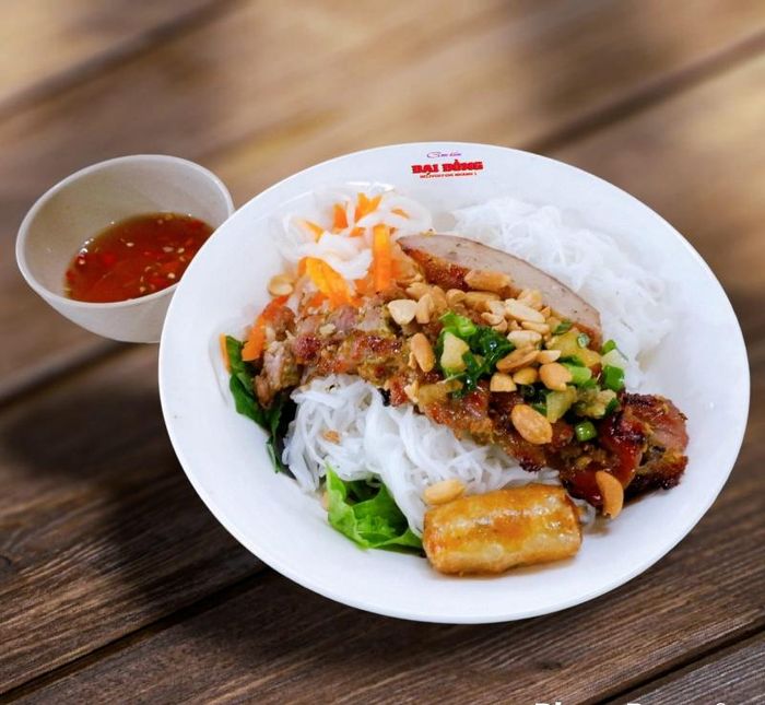 Next, Mytour would like to introduce Bún Thịt Nướng Phúc Bảo An, another must-try bún thịt nướng restaurant in HCM City. This eatery, located right at the beginning of a street, is surprisingly clean, with a spacious parking area just across the road. At Phúc Bảo An, you can find a variety of dishes including grilled pork with bánh hỏi, bún, and steamed baguettes. If you're new to the place, you can opt for a mixed platter to sample a variety of flavors or choose individual dishes like bún with spring rolls and grilled pork, bún with spring rolls, or bún with grilled beef.