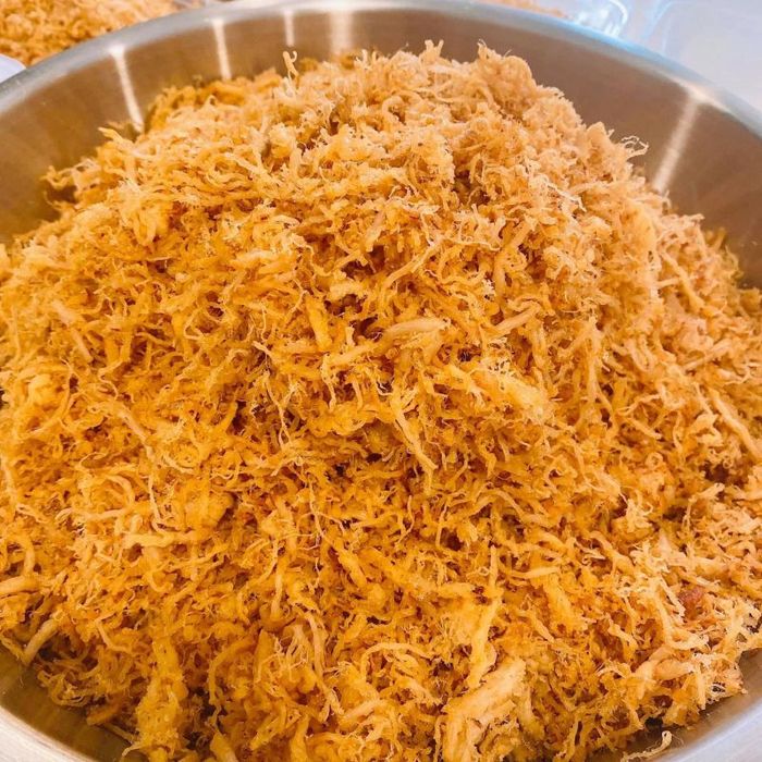 CallQuang Ninh Lobster Shrimp Floss specializes in providing high-quality lobster shrimp floss products in Quang Ninh. Similar to other types of floss: shrimp floss, fish floss, razor floss or meat floss... the type of floss we introduce today is also quite eye-catching and unique. Lobster Shrimp Floss is like river shrimp, prawns but with lots of meat, firm and very healthy. Lobster shrimp floss has elastic, soft, golden threads eaten directly with sticky rice, or excellent stuffed cakes. Ingredients include: bamboo shrimp, pork shoulder and other spices.