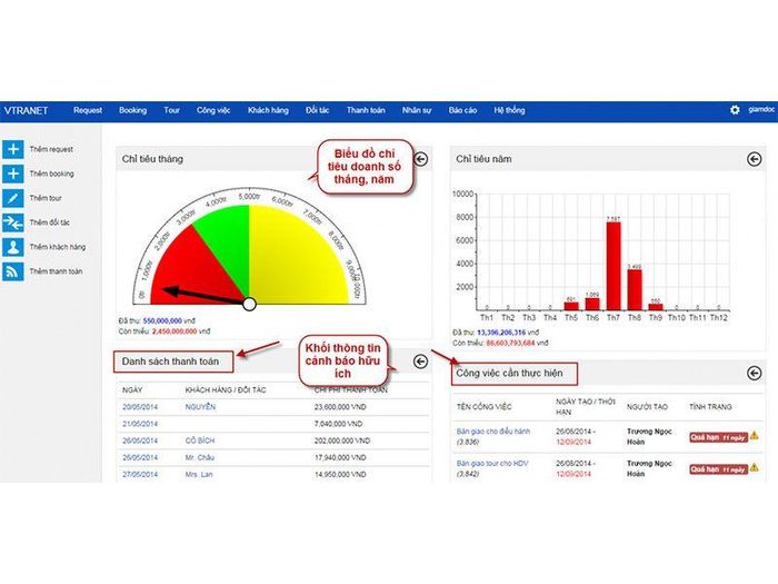 - Creation of effective business tools: Recording customer demand information, tracking, managing transaction history, scheduling tasks, planning customer care for individual customers. Task assignment, task handover, reporting, progress monitoring, work results of each department, member. Task progress alerts, customer care schedules.
