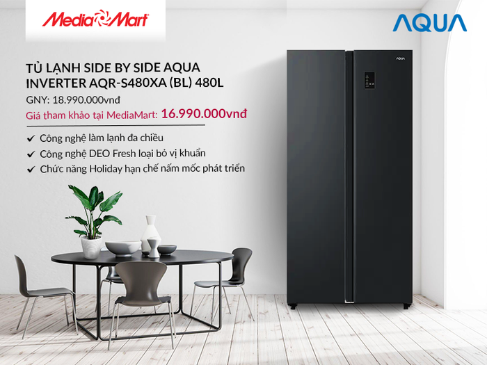 Among the top 5 best-selling large refrigerators during Tet, the Coex RS-4001MSG model cannot be overlooked. Belonging to the Side by Side category with a large capacity of 546 liters and 2 doors, the Coex RS-4001MSG is perfect for storing large amounts of food during the Tet holiday, suitable for families of 5 - 7 members.