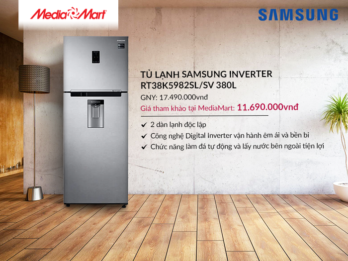 The Samsung RT38K5982SL/SV refrigerator, highly sought after by consumers in the market, especially towards the end of the year, not only boasts outstanding features but also comes at a reasonable price. Currently, this product is listed at 17.49 million VND and is available at a discounted price of only 11.69 million VND (a reduction of up to 5.8 million VND) at the Mytour electronics supermarket.