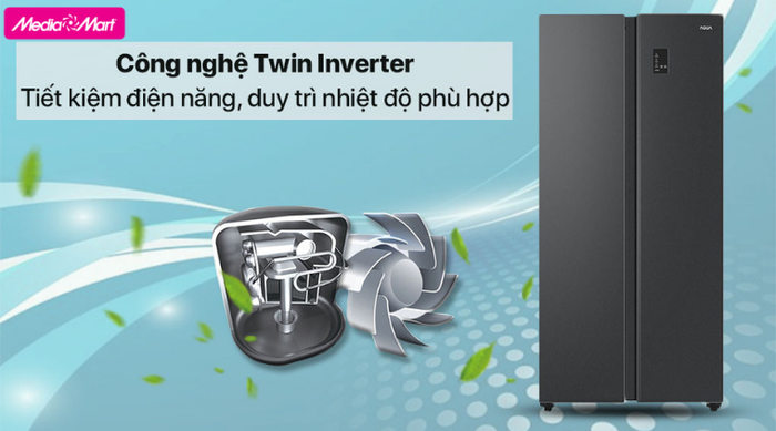 Aqua Inverter 480L AQR-S480XA is also equipped with Twin Inverter technology, using both the compressor and fan Inverter, significantly saving electricity usage. This ensures the refrigerator's durability and optimal food preservation.