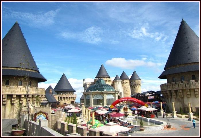 As you stroll through the French Village at Ba Na Hills, you’ll feel as though you’ve stepped into a European fairy tale. The architecture here is uniquely captivating, with towering buildings that feature pointed rooftops resembling grand castles, side by side against a backdrop of brilliant blue skies. Situated atop Ba Na Mountain, the village enjoys cool temperatures and fresh air, surrounded by lush greenery.