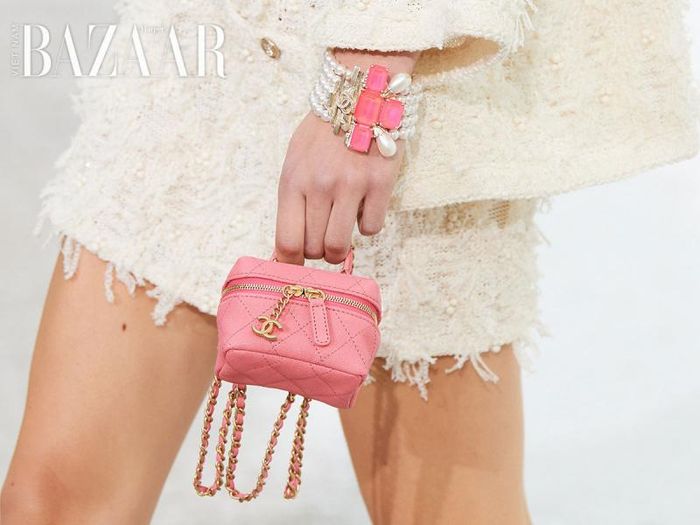 On the Spring/Summer 2021 runway, the mini bags from Chanel stole the show. This is a clear sign that the mini-bag is here to stay. The mini bags on the Chanel runway came in two forms: some were miniature versions of the brand's classic bags, while others were metallic mini bags designed as jewelry. These tiny bags, crafted by expert artisans, shimmered with precision, resembling glittering diamond rings.