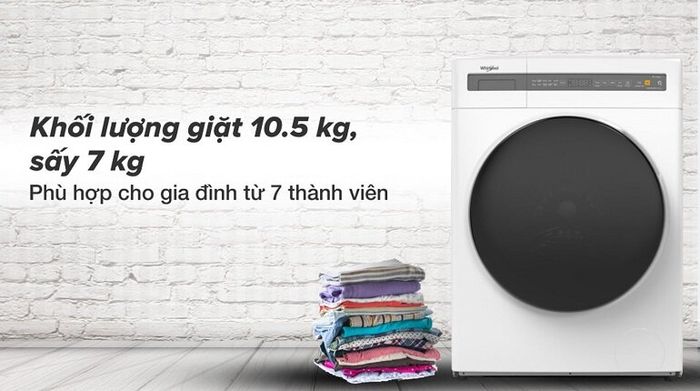 The Whirlpool Inverter 10.5kg WWEB10702FW washer dryer, although originating from a well-known American brand, is manufactured and processed in China in 2022.
