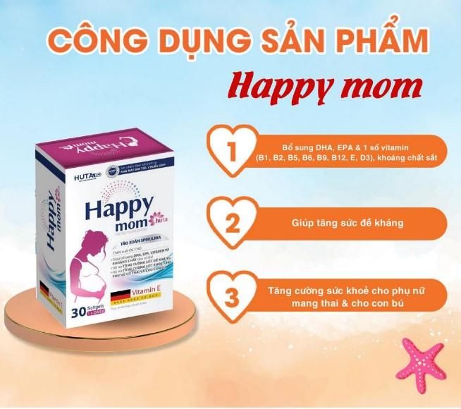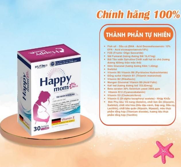 - Happy Mom provides essential vitamins and minerals for pregnant women with a balanced and complete content, helping pregnant women stay healthy, soothing discomfort, poor appetite, poor sleep, cramps due to lack of nutrients,...