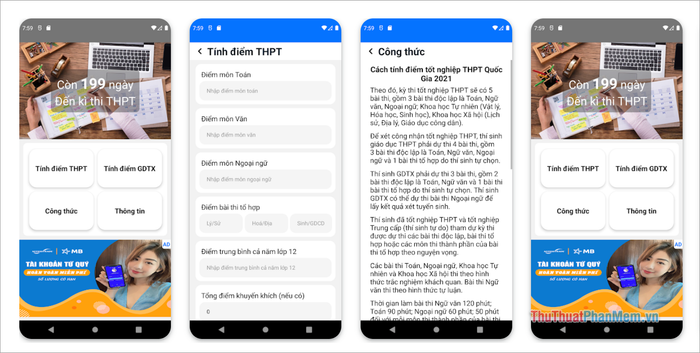 The High School Exam Score Calculator app provides an effective, detailed, simple, and understandable scoring tool. Users only need to fill in all the necessary information such as academic records, graduation exam scores, additional points, coefficient points, etc., for the system to automatically calculate and provide accurate results. The app has the ability to accurately calculate graduation scores up to 99.99% based on user-provided data, ensuring accurate information. Not only that, the High School Exam Score Calculator app can also predict the required scores for students to graduate from high school, thereby providing suitable study and exam strategies for students.