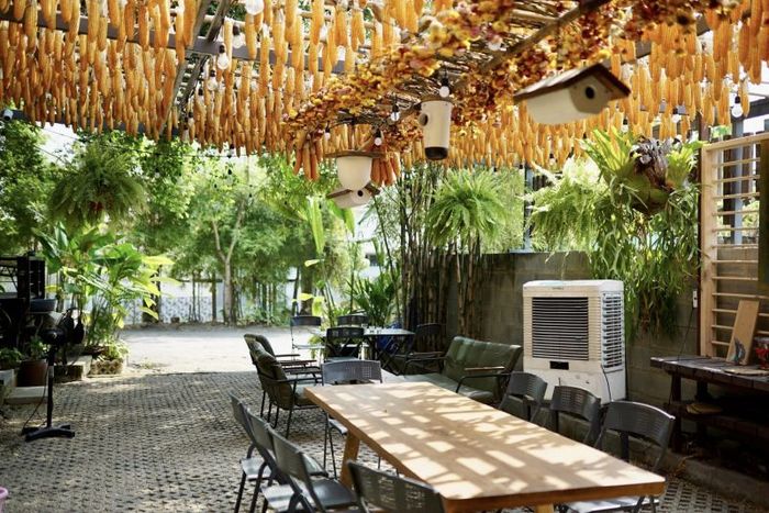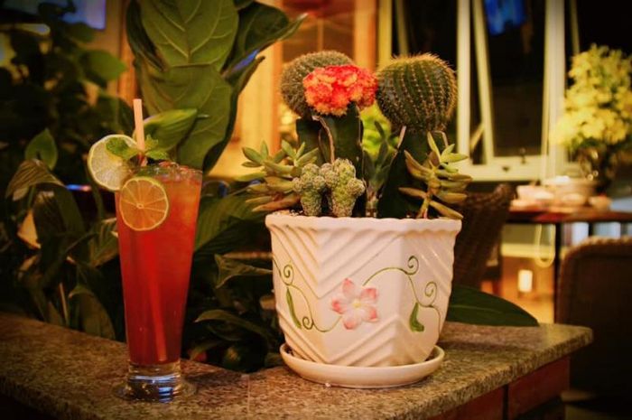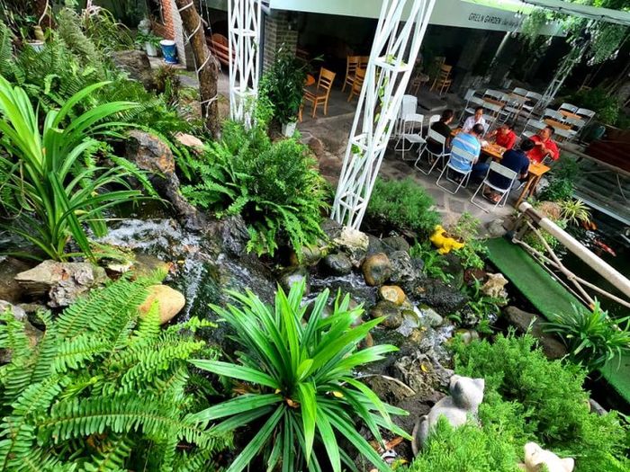 Not only does the interior offer a pleasant aesthetic with well-thought-out furnishings, but the café also cleverly harnesses the power of wind and water to naturally cool the space. One notable feature is the centrally located bar, designed to serve groups of friends or families, perfect for hosting small birthday parties or memorable celebrations. Whether it’s morning, afternoon, or evening, Green Garden Coffee will always satisfy with its delightful drinks and attentive service. It’s the perfect venue for a romantic date or any special occasion.