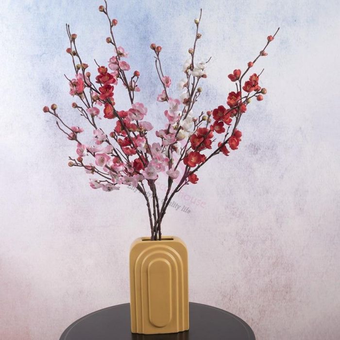 - Combo of vases and peach blossom branches with fan-shaped leaves for Tet
