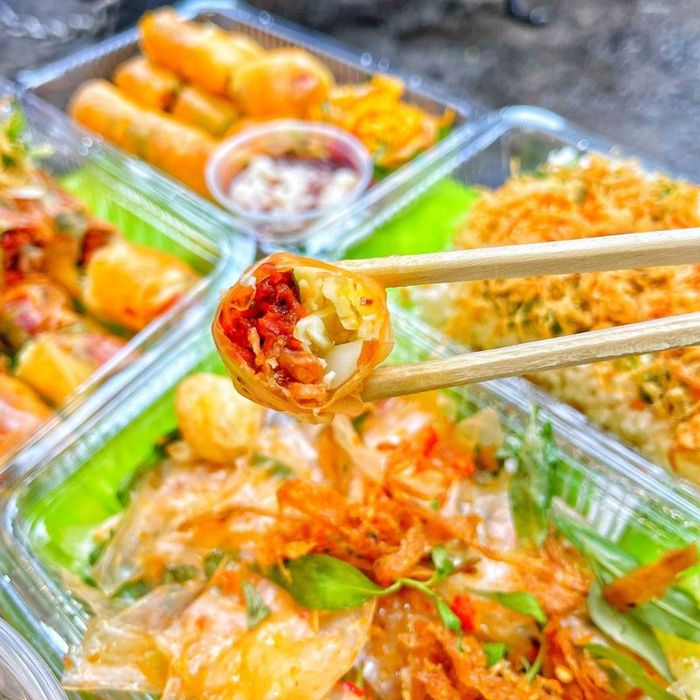 Bánh Tráng Chấm Nguyễn Văn Tráng is a top recommendation for snack lovers in Ho Chi Minh City, especially for those who enjoy the variety of bánh tráng dipping. This spot offers a wide selection of delicious bánh tráng, with its signature dipping bánh tráng being the star. The prices are reasonable and the quality, from appearance to taste, is fantastic, making it a popular choice for many customers. The bánh tráng is perfectly chewy and infused with the spicy, salty flavor of the dipping sauce. For a richer taste, you can add a boiled egg or quail egg. Bánh Tráng Chấm Nguyễn Văn Tráng is known for offering a serving starting from just 20,000 VND, which includes bánh tráng, herbs, and a cup of special dipping sauce with a balance of sour, sweet, and spicy. The garlic oil gives the bánh tráng a pleasant fragrance and soft texture. Additionally, this place also serves delicious bánh tráng trộn, seasoned just right, with plenty of toppings, making it a favorite among students.