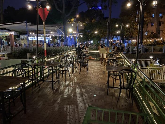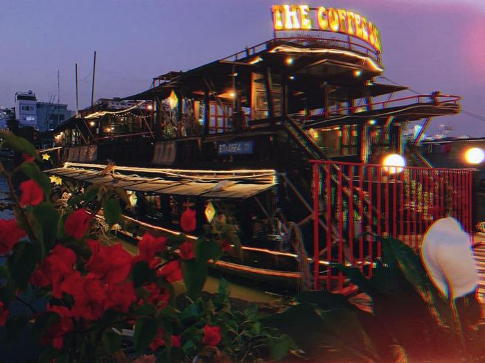The Coffee Ship is known as the "place to find peace" in Saigon. Located at 759 Tran Xuan Soan, District 7, The Coffee Ship is one of the hottest cafés in the area, thanks to its unique boat setting on the river. The café is a two-story boat with simple décor, wooden furniture, and small flower pots placed along the windowsills, creating a peaceful, tranquil atmosphere. During the day, natural sunlight pours through the windows, while in the evening, soft yellow lighting fills the space, making it warm and romantic.