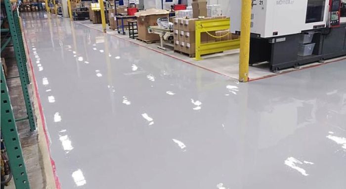 - Epoxy Coating: This is the most popular paint on the market due to its affordable price and effective performance. It allows businesses to save costs while being suitable for factories with light to medium machinery loads.