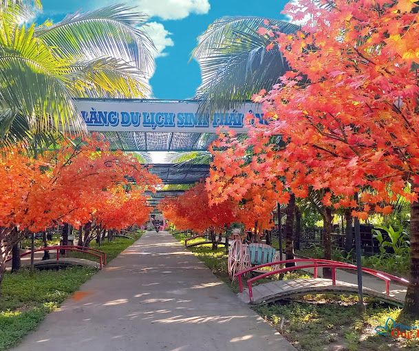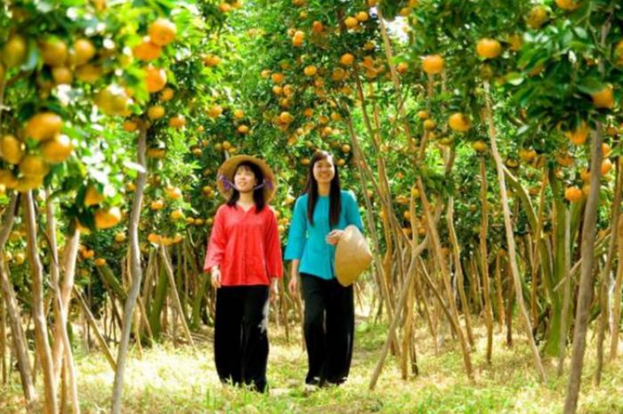 Here you can take a stroll through fruit orchards filled with various types such as oranges, mangoes, plums... Or enjoy a refreshing walk, learn about each type of tree, pick and taste them on the spot which will be a very interesting experience for many tourists. Besides, you also get to experience making rice paper and brewing traditional alcohol, embodying a professional baker to learn how to make rice paper and various types of alcohol to bring back as gifts for family and friends.