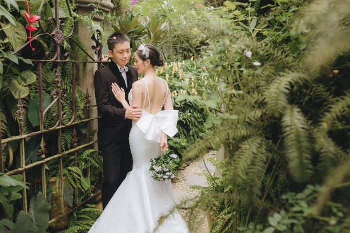 Pure, pristine, elegant, graceful,... it seems there are numerous such adjectives to describe the incredibly beautiful wedding dresses currently available at Ngoc Trinh Studio. From daring V-neck designs or sensually revealing bare-back styles, especially suitable for those who love classic features yet still want to flaunt their 'killer' curves, to flowing wedding dresses for the gentle, feminine look, yet still exuding sensuality, then there are the strapless wedding dresses, a smart choice for slender, petite figures, to off-the-shoulder wedding dresses - a hot topic nowadays for those with sexy, shapely shoulders and ample bosoms,... all will converge at Ngoc Trinh Studio for you to explore to your heart's content!