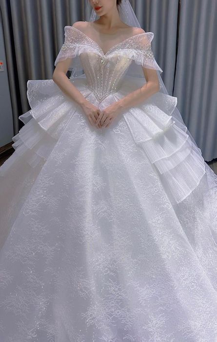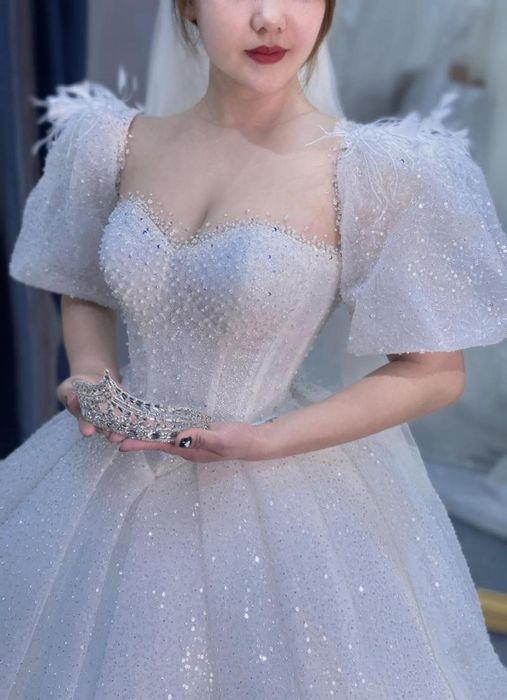 Worry not, at Thành Linh Wedding, you will choose the most exquisite and suitable wedding dress from traditional, classic styles to simple Korean styles. Besides the gorgeous wedding dresses, accessories like veil and hairpins are also available. With each wedding dress design at Thành Linh Wedding, experienced staff will enthusiastically advise on which style suits you best, ensuring that you stand out, attract, and look your best on that day.