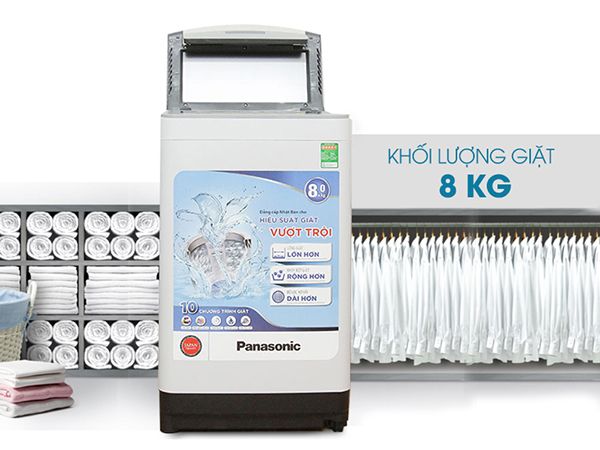 The Panasonic 8.0 Kg NA-F80VS9GRV washing machine is designed with the latest vertical drum technology from Japan. The machine features a rectangular body combined with an impact-resistant glass lid, creating a strong and sturdy appearance for your laundry area. With a washing capacity of under 8 kg, the Panasonic washing machine is a thoughtful choice for families with 4 to 5 members.