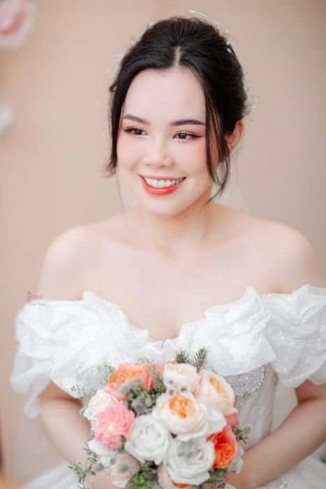 With a focus on natural beauty, the makeup style of Nguyen Hang is never overdone. Soft waves in the hair, along with delicate accessories, bring out the bride's grace. The fresh, glowing skin, subtle blush, and natural lip color will add youthful charm to any bride on her special day. Additionally, using high-quality cosmetics applied by skilled professionals ensures long-lasting makeup that is safe for all skin types without causing irritation.